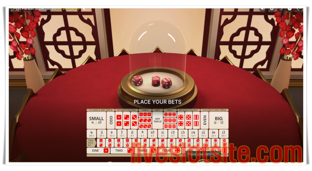 광범위한 ‘스몰’ 및 ‘빅’ 배팅 대신 4에서 17까지의 범위에서 세 개의 주사위의 정확한 총합에 배팅 할 수도 있습니다.