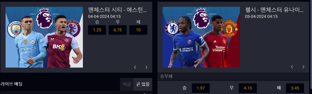 경기당 최대 1500개의 배팅 게임이 제공되고 있어서 모든 유형의 배팅 게임을 진행할 수 있다는 장점과 배당률이 높다는 장점을 동시에 충족하고 있습니다.